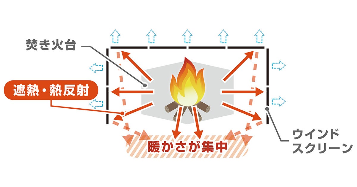 キャンプやアウトドアでの焚き火の際に、このスクリーンを使用することで、風による熱のロスを防ぎ、効率よく暖を取ることができますね。これからの寒い季節にはぴったりのアイテムです!